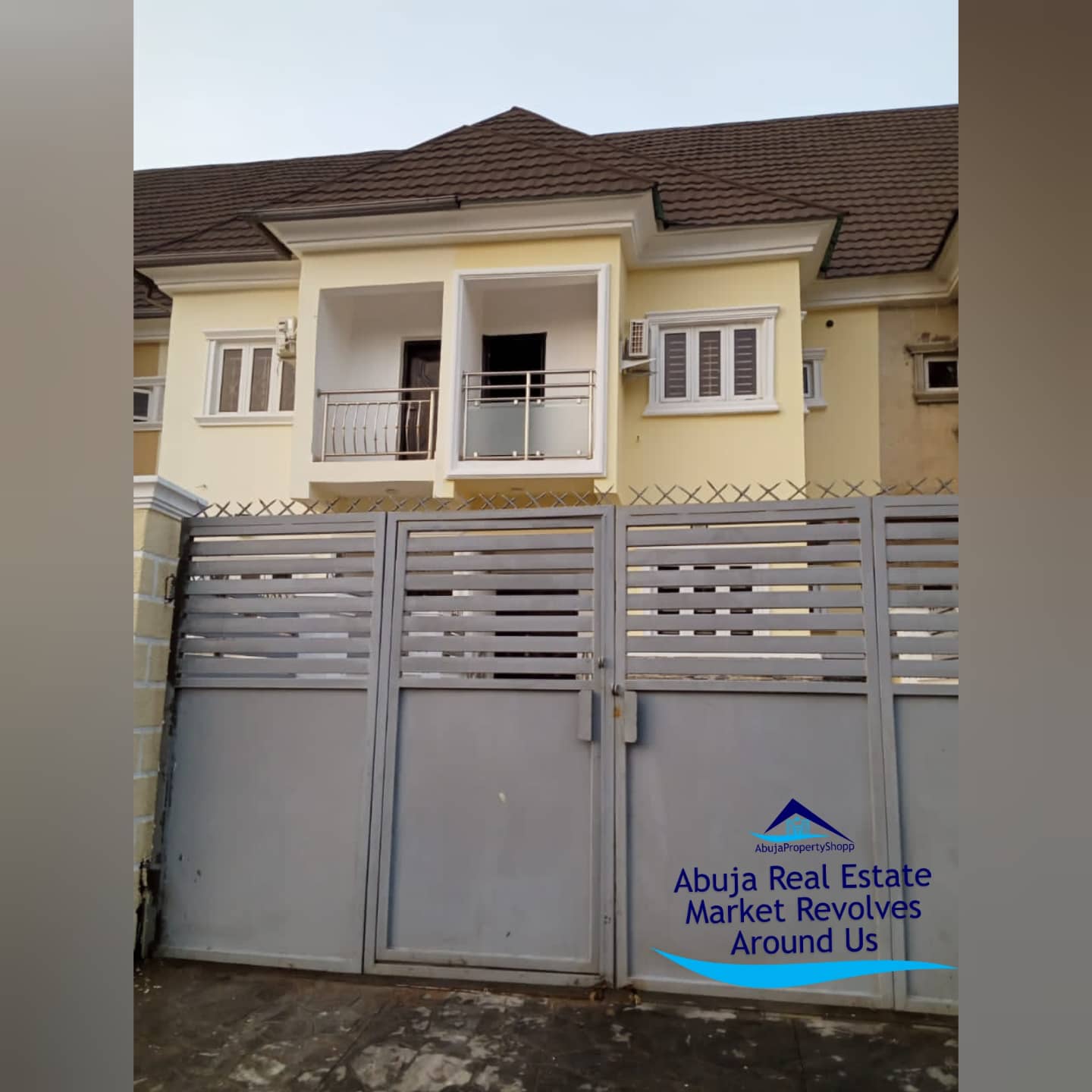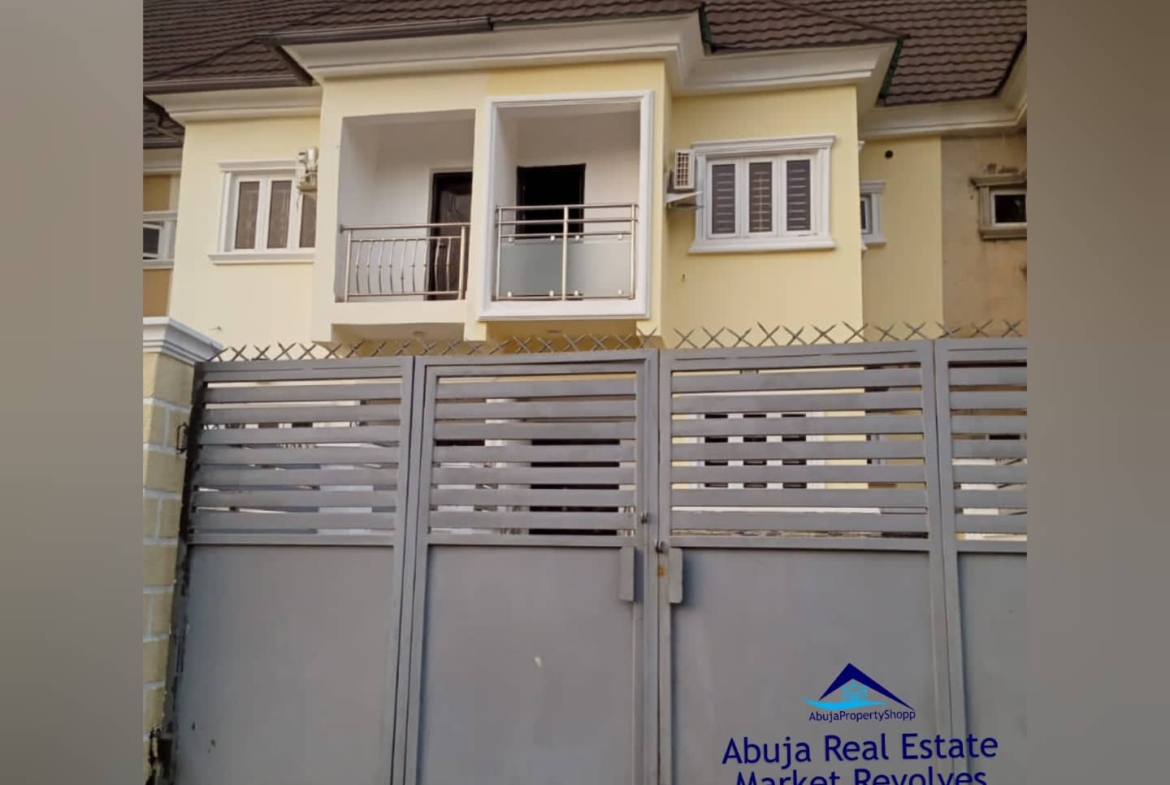 A 4 Brand New Semi Detached Duplex. With 4 En-suite Bedrooms, massive living room, Furnished Kitchen. All Rooms with AC. Overhead Tank, Gated. Uniformed Guards. Regular Power supply. Easy access